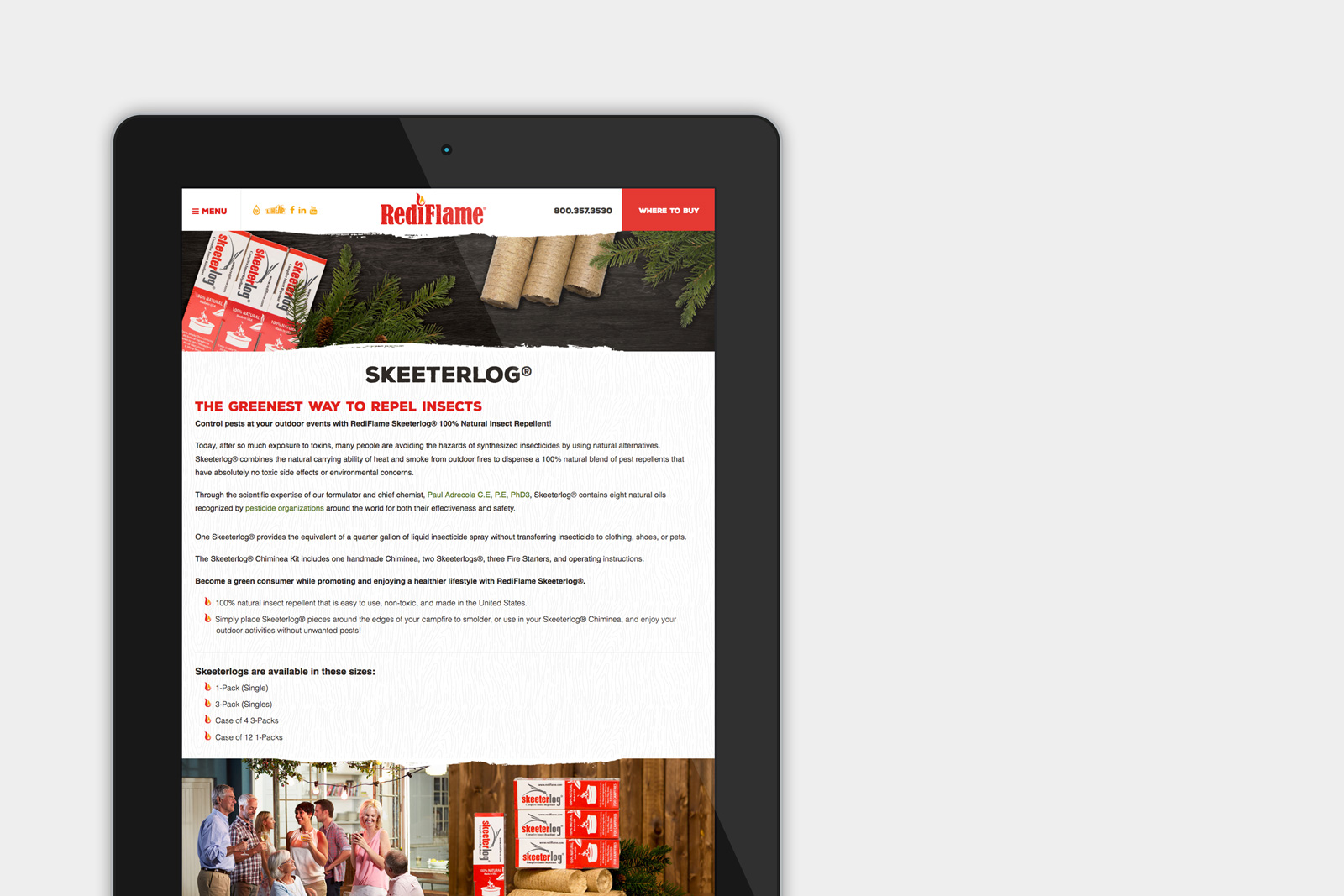 Before work could begin on the website we needed to make RediFlame’s products look good + stand out by having a product photo shoot session to highlight all of RediFlame’s products. The products were captured on a wood background with various product group shots and also photoshopped to have a transparent/white background option. Once the product images were ready it was time to created a beautiful mobile-responsive website for RediFlame. The website is easy to navigate, has strong call-to-actions, and showcases their products very well; with a cool where to buy tool.